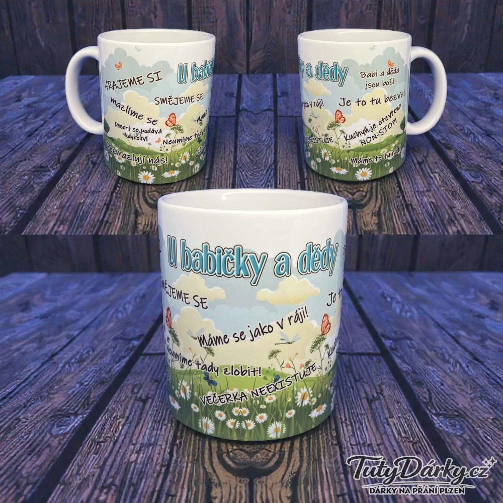 Hrnek „U babičky a dědy“ je malý návrat do místa, kde je vždycky dobře. Tam, kde se směje, mazlí, nehubuje a kde je svět hned o něco hezčí. Ideální hrnek plný pohody a vzpomínek. celý popis