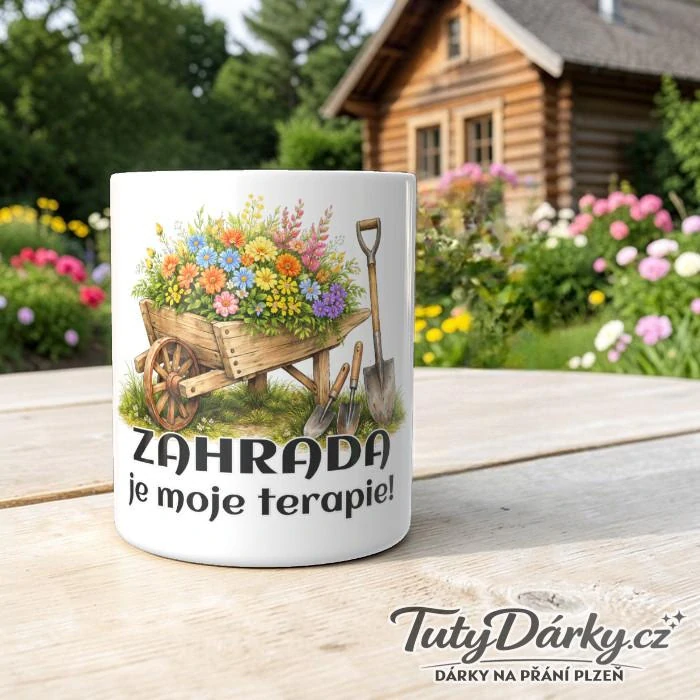 Hrnek s nápisem „Zahrada je moje terapie“ potěší každého zahradníka, milovníka květin, záhonů i klidu mezi rostlinami. Ideální společník na ranní kávu před rytím i odpolední čaj po zasloužené dřině.